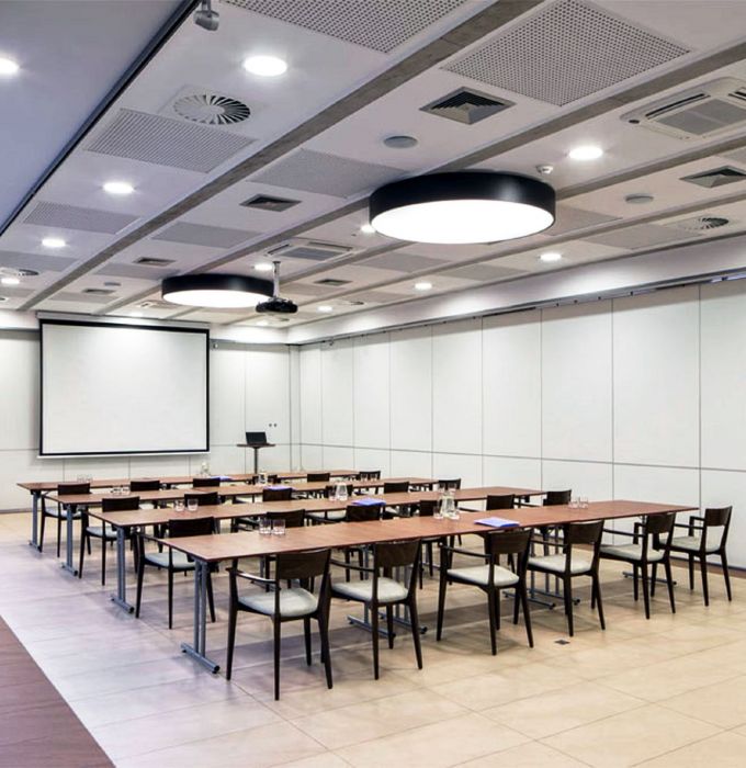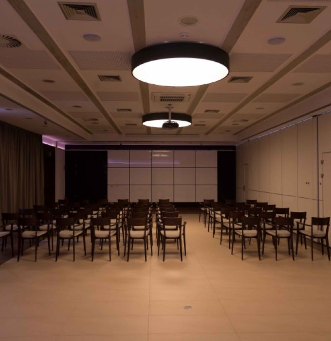 Kameralna, 127-metrowa sala.  SALA B - sala przedzielona ścianą akustyczną. Idealna do zorganizowania mniejszej konferencji.
